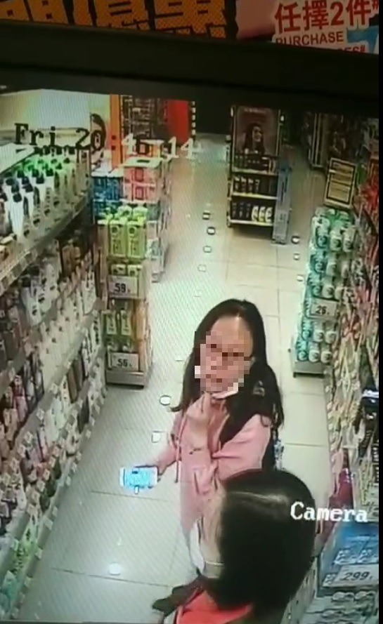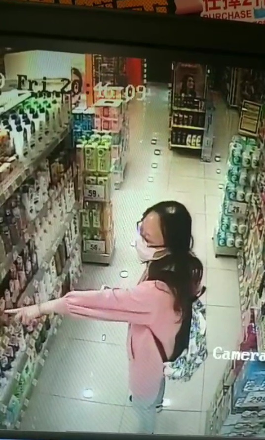 該閉路電視公開的時間為上周五(2月28日)晚上8時許,在上水的一間店舖中,一名身穿粉紅色上衣、揹著背包的長髮女顧客,向職員查詢洗頭水問題的時候所發生的。