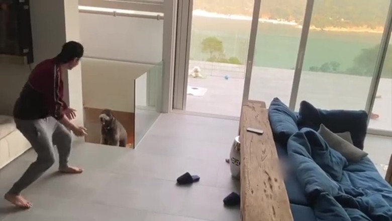 片段中見到他的家是以簡潔為主,看上去很溫馨、舒服,客廳大到可以同狗狗跑步追逐,兼且還放了張巨型沙發,足夠瞓幾個人。