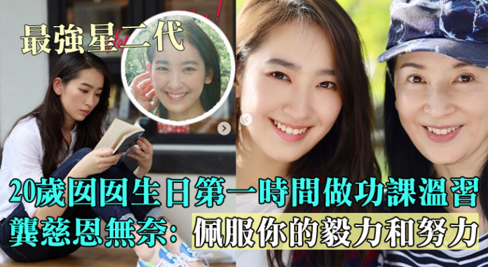 昨日3月3日是Ashley 20歲生日,龔慈恩上載幾張照片恭祝女兒,一張是Ashley 坐在櫈上好有文青Feel地看書,另一張則是母女頭貼頭展現溫馨笑容,相中顯見Ashley和媽媽餅印一樣。