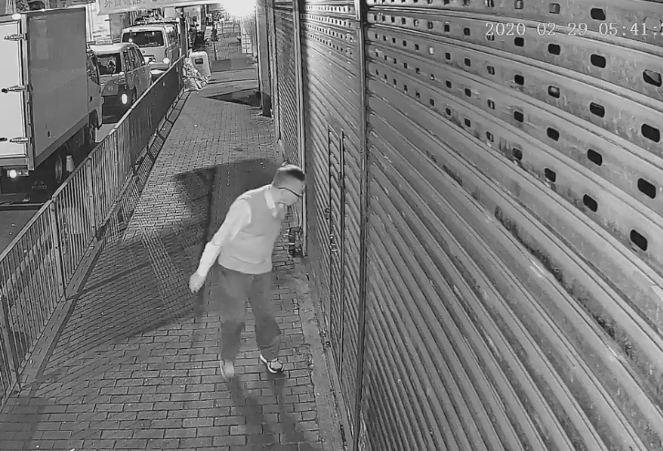 該甜品店將片段上載社交平台,從店舖門口拍攝的閉路電視片段顯示,事發於上周六(29日)清晨近6時。片段開始,該名未戴上口罩的阿伯行近店舖,突然向着鐵閘手柄大大力吐出一口濃痰,再施施然離開。