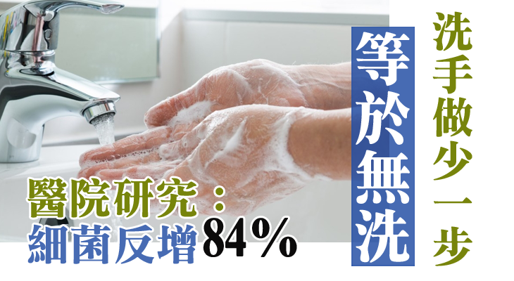 武漢肺炎疫情持續,政府呼籲市民戴口罩和勤洗手,以有效預防染病。台灣有醫院的研究報告曾指出,洗手如少做一個步驟「將白洗一趟」。