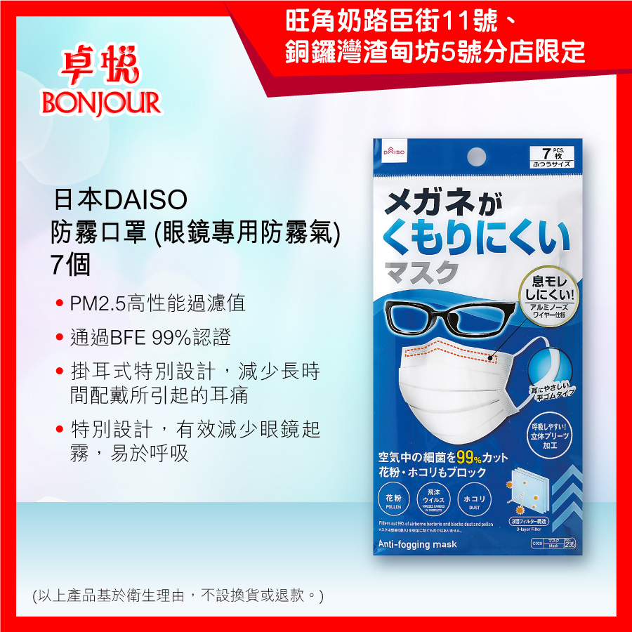 1️⃣ 日本DAISO防霧口罩(眼鏡專用防霧氣) 7個