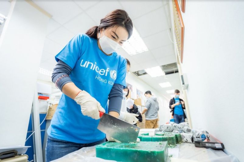 大家都落力幫助香港基層市民抗疫,又送口罩及防疫物資。而近日霍啟剛太太郭晶晶都有加入送暖行列,以聯合國兒童基金香港委員會(UNICEF HK)大使身份,加入義工團隊,協助處理抗疫物資,見她落手落腳包口罩,又切番梘,非常落力。