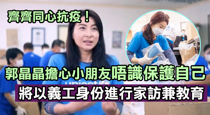 郭晶晶表示最擔心小朋友的健康,她說:「在這次疫情裏面,我最擔心嘅其實係小朋友嘅健康。因為我們大人知道有乜嘢要注意,但係小朋友有時候就唔係好清楚點樣去做。我希望教導小朋友點樣去保護自己、點樣去注意衞生。我覺得香港有好多有善心嘅人,踴躍捐咗很多嘢,我都想為我哋嘅城市出一分力,同UNICEF HK嘅義工一齊處理抗疫物資,送畀有需要嘅家庭同小朋友,好希望同大家一起共同做好抗疫工作。」