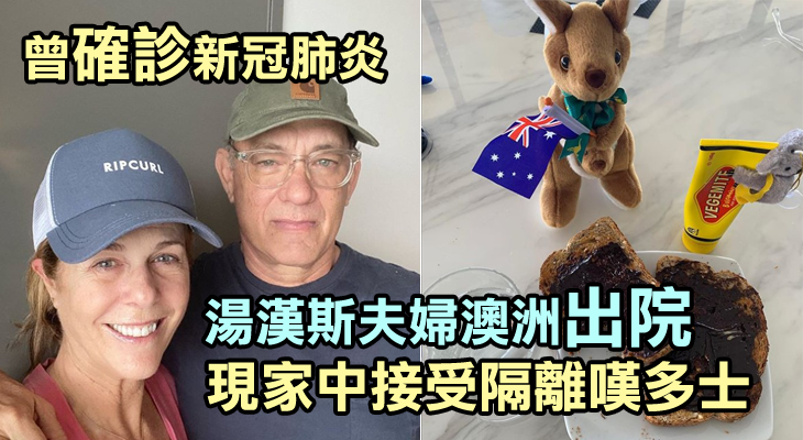 荷里活男星湯漢斯(Tom Hanks)上周宣布於澳洲拍攝貓王傳記片時,與妻子麗達韋遜(Rita Wilson)確診新冠肺炎,他們於黃金海岸醫院接受隔離後,現已出院,於澳洲寓所自我隔離。