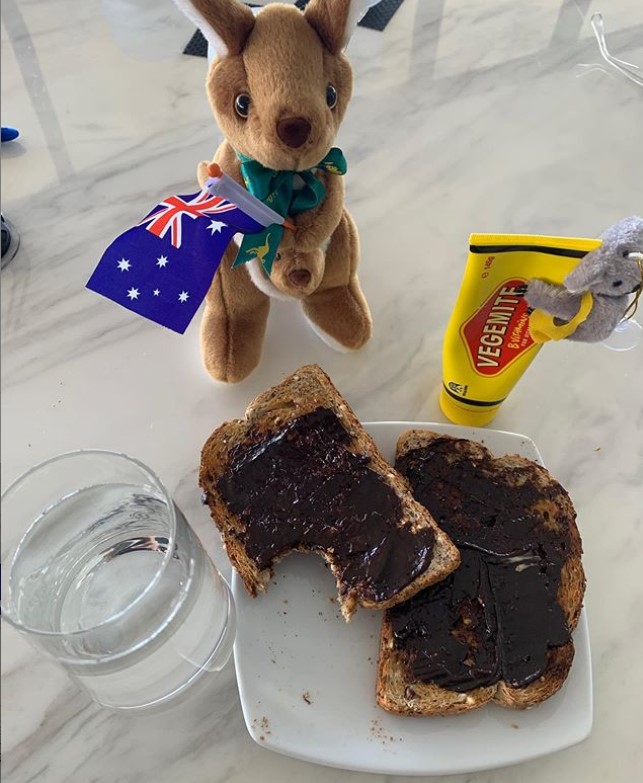 之後,湯漢斯亦有於社交網站更新上載一張食物照片,其中是兩塊塗滿澳洲特產酵母醬(Vegemite)的多士,旁邊放著一隻袋鼠公仔。他留言多謝當地醫護:「多謝醫護。大家要照顧好自己同身邊人。」