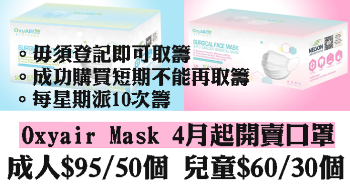 Oxyair Mask 公布會在4月開始,起用網上派籌形式賣口罩,而當中更會首設「保護區」,代表成功取籌購買口罩及短期內不能再取籌!