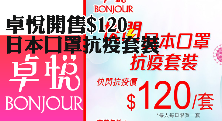 卓悅(Bonjour Cosmetics)今日在官方 Facebook專頁公布,今日快閃出售日本口罩抗疫套裝。