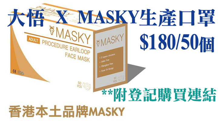 新冠肺炎持續,市民每日都落力噗口罩,亦越來越多最近又有一間名為「大悟」的團隊在Facebook專頁宣布,聯同MASKY 設立生產線製造口罩。第一批 100萬個口罩,即將公開發售。