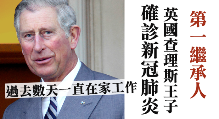 Fun享健康生活生活時事 【第一繼承人】71歲英國查理斯王子確診新冠肺炎 2020-03-25 Share on Facebook Tweet on Twitter 英國皇室發聲明指,英國王位順位第一繼承人、71歲的皇儲查理斯王子確診新冠肺炎。 他出現溫和病徵,但整體健康狀況良好,並如過去數天一樣在家中辦公,而妻子經檢測後證實沒有染病。 閱讀全文