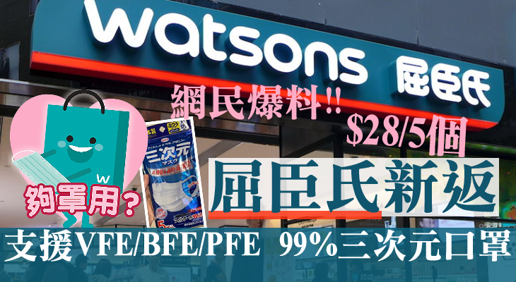 新冠肺炎疫情沒有減退跡象,難怪仍有市民日夜忙於購買日用品和抗疫產品。最近有網民爆料,李嘉誠旗下的屈臣氏Watsons售賣價格相宜的口罩。