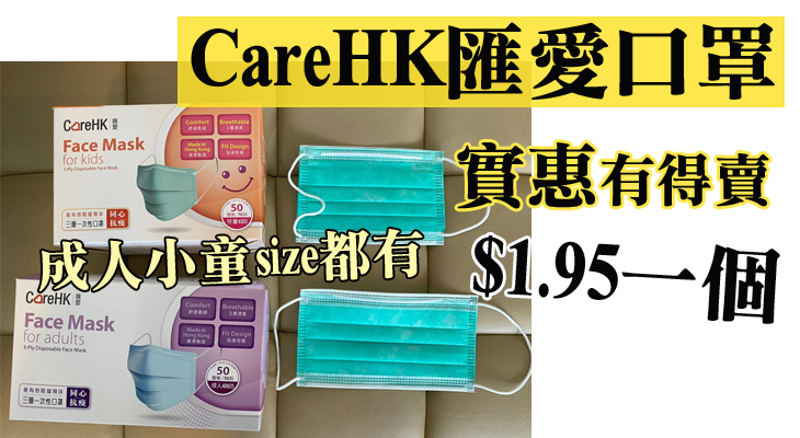 【成人小童size都有】CareHK匯愛口罩 實惠有得賣 $1.95一個
