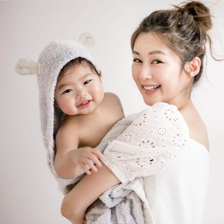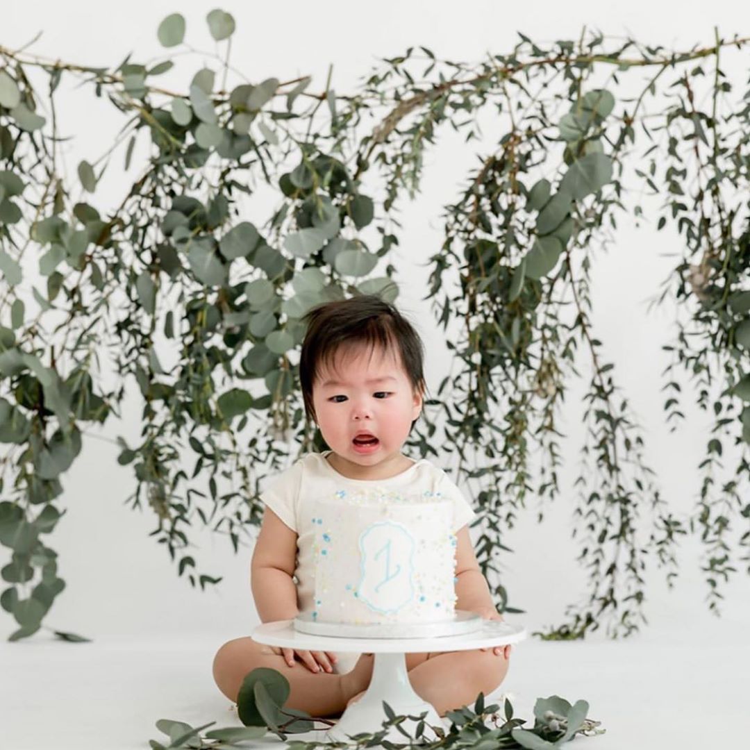 香香近日於社交網分享全家福近照,留言:「One little birthday for you, one lifetime memory for us. Forgot to post these, better late than never. #thatbelly #cakesmash」