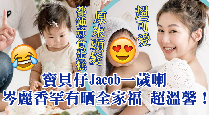 相中一家三口都有出鏡,肥嘟嘟、凸晒腩的Jacob就坐在地上徒手食蛋糕,他不單食到手手腳腳都污槽晒,連凌亂嘅頭髮都黐晒Cream,非常為食!