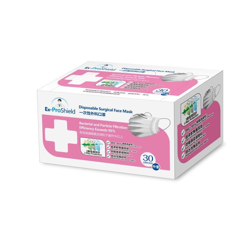 森川實業最近推出的新產品Ex-ProShield口罩已於近日推出,分別為成人30個裝、成人50個裝三層口罩,PFE及BFE皆達致95%以上,最新一批約10,000盒成人及中童口罩已抵達香港並送抵全港多間藥房,其中新增的是中童30個裝口罩,為粉紅色包裝。