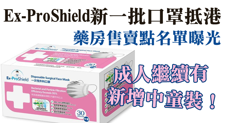 森川實業最近推出的新產品Ex-ProShield口罩已於近日推出,分別為成人30個裝、成人50個裝三層口罩,PFE及BFE皆達致95%以上,最新一批約10,000盒成人及中童口罩已抵達香港並送抵全港多間藥房,其中新增的是中童30個裝口罩,為粉紅色包裝。