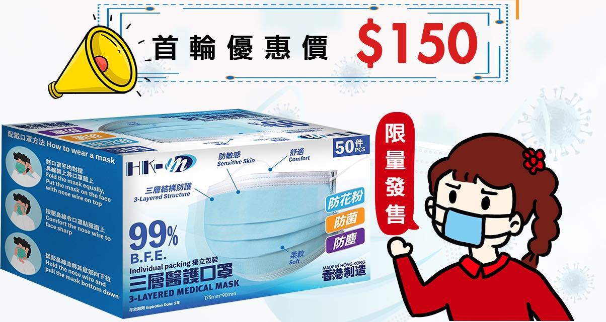 首輪優惠價為$150/1盒50個裝 (獨立包裝)。每人會限購2盒,並將在4月尾之前按付款的順序出貨。