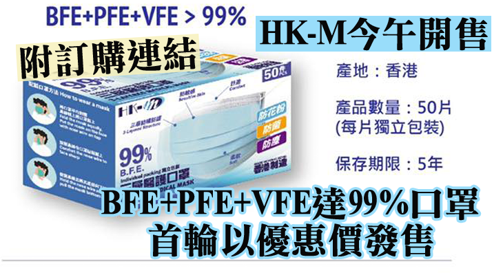 相關新聞:【港產PrimeHK今日開賣8萬盒口罩 $125/50個】 http://mybblink.online/k/18E0a