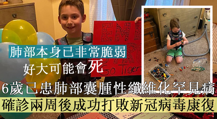 美國一名男童患有肺部囊腫性纖維化(cystic fibrosis)疾病,日前更確診患有新冠肺炎。男童在與新冠病毒戰鬥2周後,病情好轉,男童更能夠精神奕奕地透過片段向早前祝福他早日康復的網民道謝。