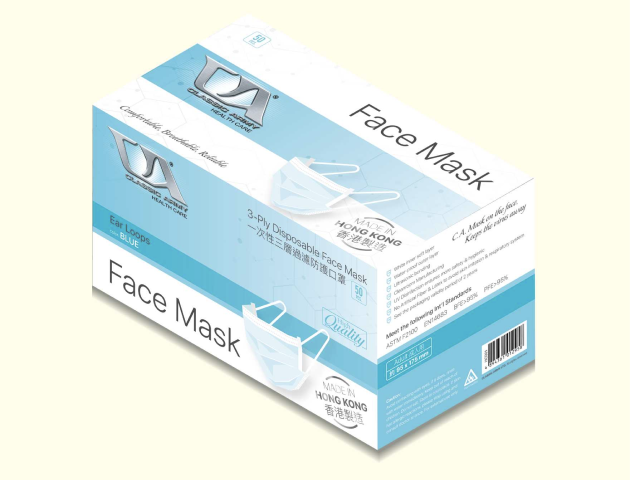 。3層過濾防護成人口罩,符合ASTM 第1級防護標準