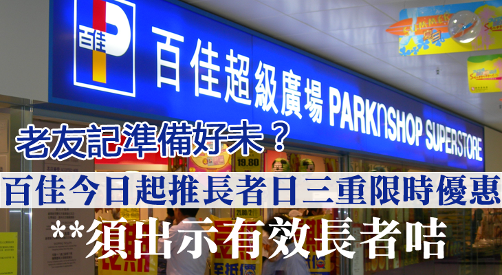 鑒於最近長者於嚴峻疫情下的生活需要,百佳將優惠內容擴大 ,由今天(4月15日)開始,長者於全線香港百佳及旗下超市(GREAT Food Hall 及 CKC food le parc 店舖除外)購物並出示「長者咭」,即可享受三重優惠。