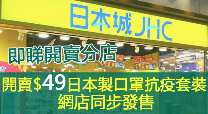 日本城剛宣佈開賣$49口罩抗疫套裝,包括3個日本製造的口罩和一支20ml的消毒噴霧。