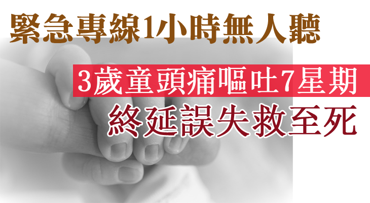 根據《每日郵報》報道,其中一名3歲男童出現頭痛及嘔吐已長達7星期,他的媽媽曾與他求醫,可惜未有改善。某日男童心臟突然停頓,媽媽立即致電緊急醫療專線求救,可是等了一個多小時仍然無人回應,最終送至醫院後證實不治,因延誤失救而死亡。