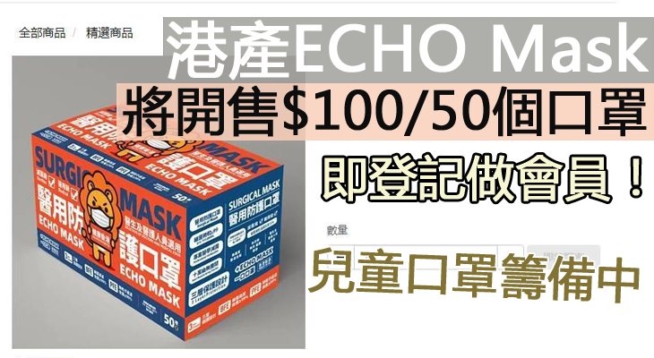本地口罩品牌「ECHO Mask一口口罩」公布,會在正式投產後開始預售,預計4月中下旬,現階段只開通市民註冊會員,以防預售前過多人同時間註冊會網絡塞車。
