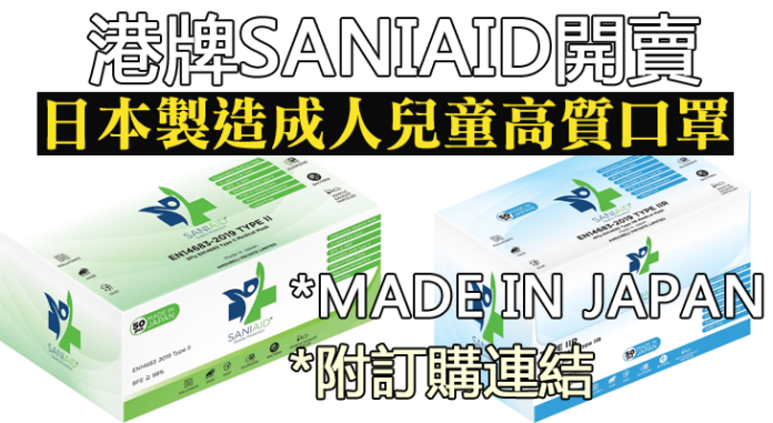 廠方指出,SANIAID系列歐盟EN14683-2019醫用外科口罩於4月16日晚上9點開始進行首輪預購,需注意產品會在6月初才到貨,等待貨品的時間較長。