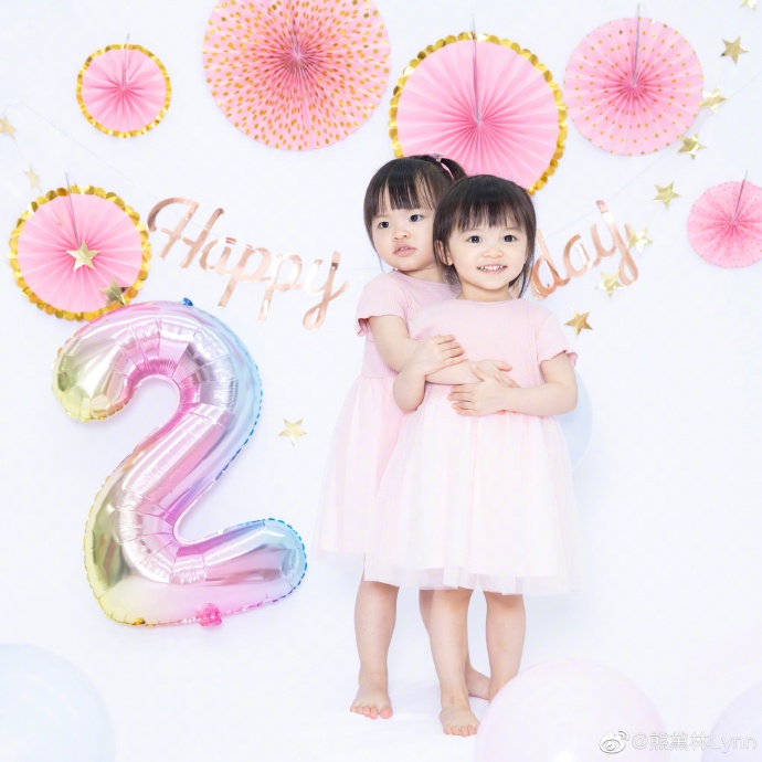 還有一張是Kaylor與Lyvia同坐地上,其中Lyvia攬着2個氣球,嘟起小嘴作狀錫家姐Kaylor,兩姊妹感情深厚,相親相愛!