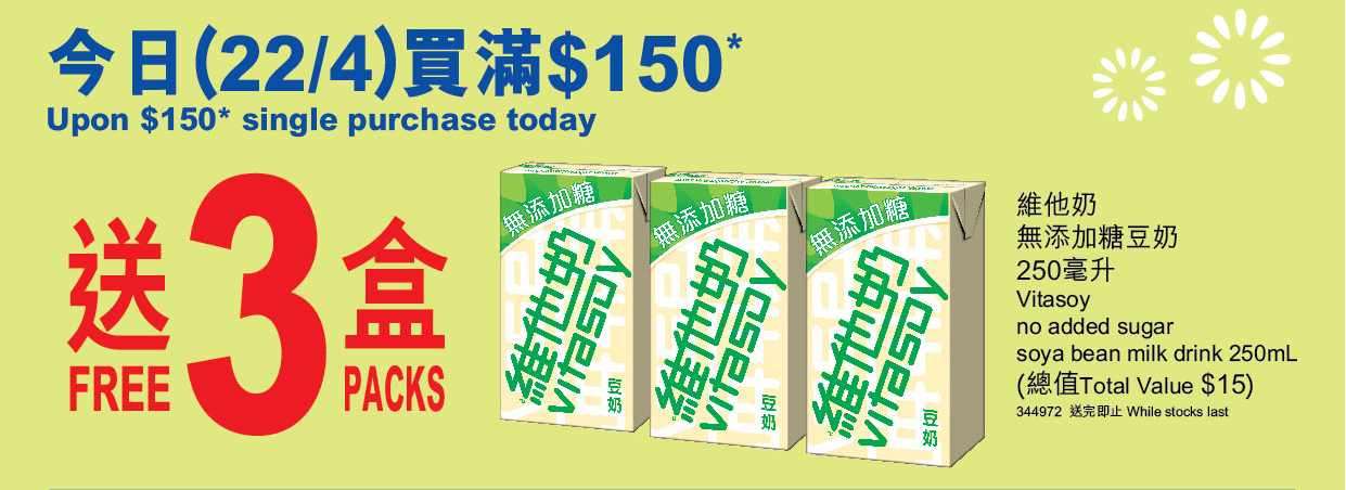 。老友記於本周三到百佳店舖買滿港幣$150,即可獲贈另一份百佳為老友記準備的精選貨品。