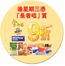 。每逢周三,老友記可繼續享受「超值牌」、「佳之選」或「金御膳」貨品9折購物優惠,品牌產品涵括必備食材及日常家居用品。