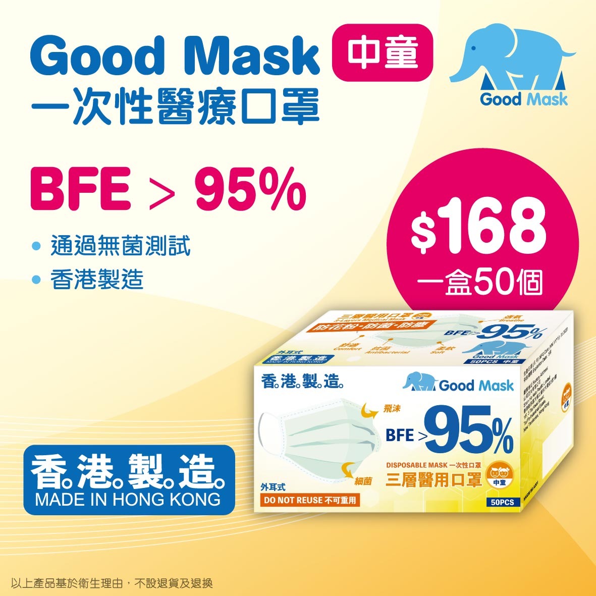 【口罩規格:Good Mask 95 一次性醫療口罩(中童)】