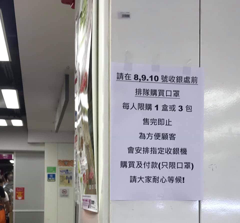 該名網民指:「一盒兒童口罩$39.9,這女士一個人買左近20盒,我親眼見到佢放好多盒入兩個袋入面,但我趕住入去買,出返黎她已經走左,好多人都見到」