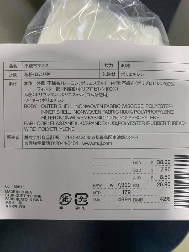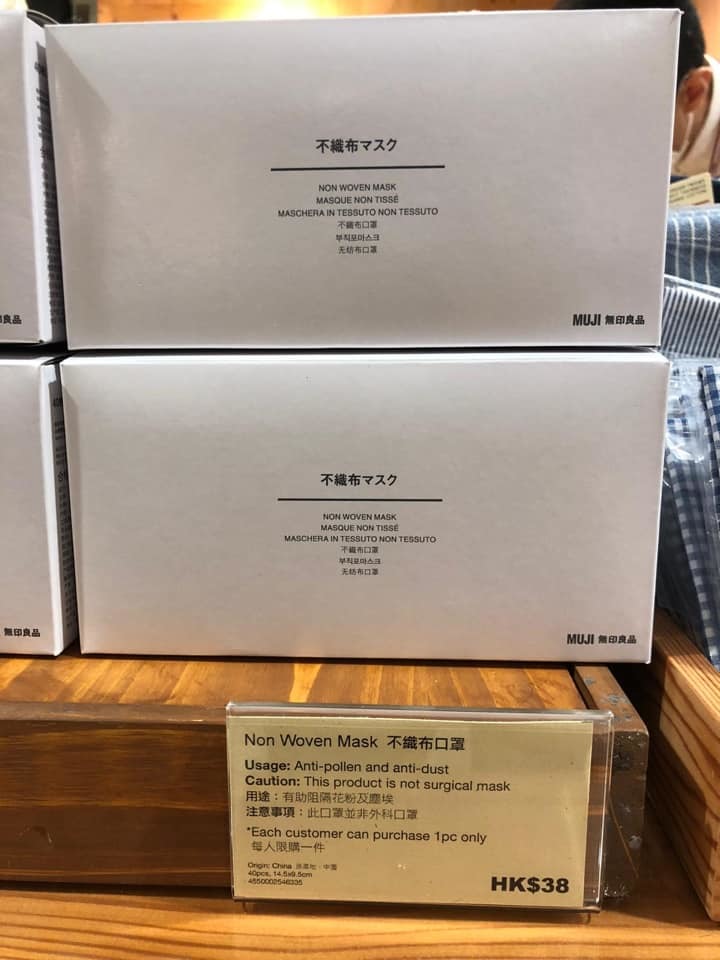近日有網民在Facebook群組分享香港無印良品亦有口罩發售。簡約的包裝貫徹品牌的作風。