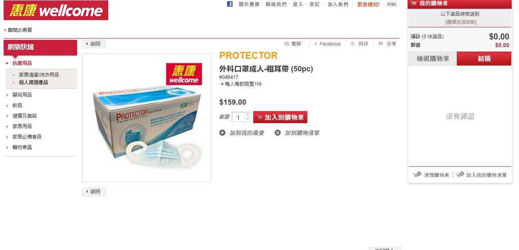 今次輪到超市惠康網店亦有發售Protector口罩,注意是新版50個裝,所以售價較30個裝貴,售$159,新一批採用不織布織帶設計。