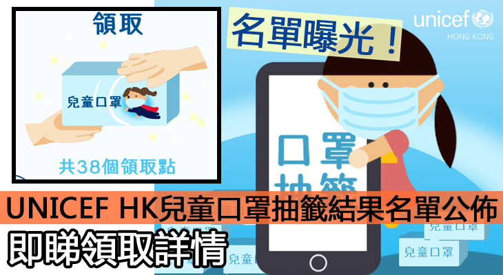 早前聯合國兒童基金香港委員會UNICEF HK就送出 10000盒兒童口罩,供全港家庭抽籤結果今日公布!