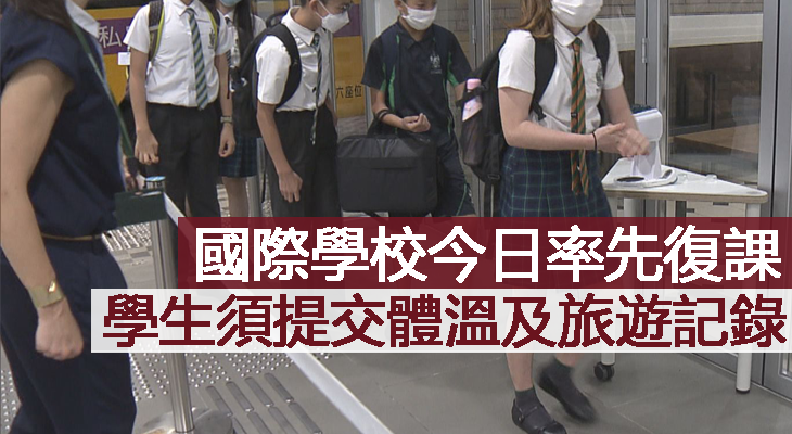 今早有傳媒訪問就讀國際學校的學生,他們表示回校很開心,亦有部分學生則希望繼嬻留家學習,主因是可以「瞓晏啲、自由啲」。學校則要求復課學生提交體溫紀錄及旅遊紀錄,進入學校亦要量體溫、擦酒精消毒液,而且暫時只上半天課。
