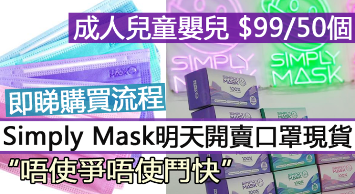 【成人兒童嬰兒 $99/50個】Simply Mask明天開賣口罩現貨:唔使爭唔使鬥快