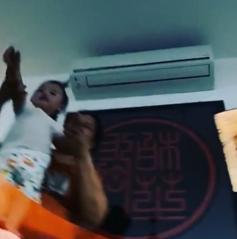 之後,栢芝再上載了一段切生日蛋糕影片,片中見到蛋糕放在旋轉枱不停轉,一班人唱生日歌,見到疑似細仔Marcus就由工人扶住站在旋轉玻璃枱旁邊,不經意被攝入鏡中,樣子清晰倒映在玻璃上面,使他的神秘真面目意外曝光!