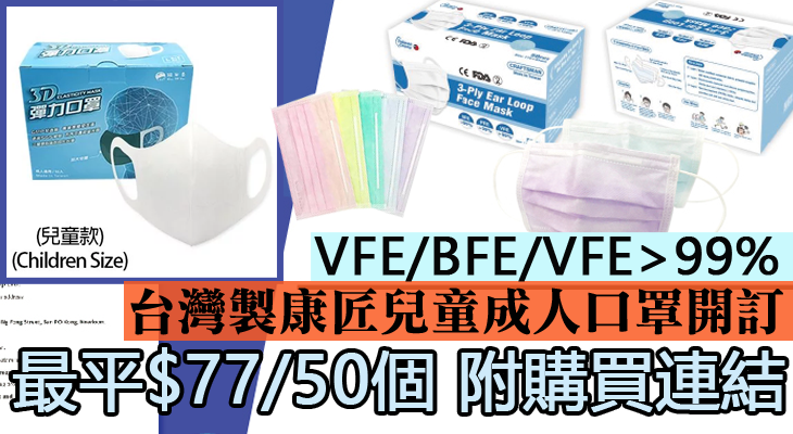 店方表示,今次推出的康匠口罩,皆採用 BFE/VFE/PFE > 99% 過濾的熔噴布製造,達Level 1水平,口罩皆由台灣製造。