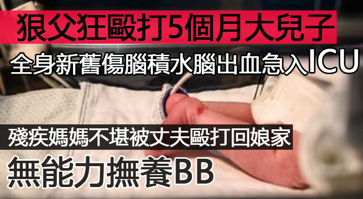 【殘疾媽媽無能力撫養】狠父狂毆打5個月大兒子 全身新舊傷腦積水腦出血急入ICU