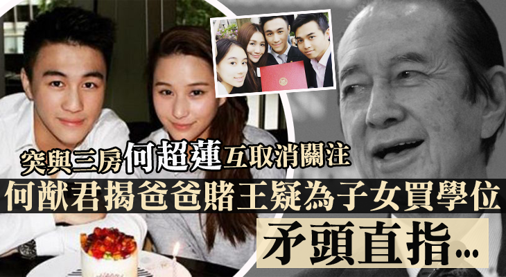 今日有大陸網民指賭王離世後沒多久,二人即取消IG關注,聲稱何鴻燊是在2007年向牛津大學捐款了250萬英鎊,直接排除大房和二房的子女,其後猷君又否認超盈買學位,令外間矛頭直指三房子女,之不過最終超蓮、猷啟及超雲也沒有就讀牛津大學。