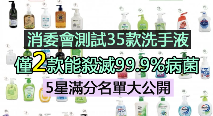 消委會調查檢測了35款洗手液,20款為一般洗手液,沒有特別標示抗菌作用;15款聲稱具除菌、防菌、抗菌或殺菌功能,其中8款更聲稱可殺菌達99.9%。消委會測試參考歐洲標準進行,評估樣本殺滅金黃葡萄菌及大腸桿菌的效能。結果發現,15款抗菌洗手液在殺滅大腸桿菌手表現參差,當中3款殺菌率低於41%,殺滅金黃葡萄球菌的表現則較為理想。