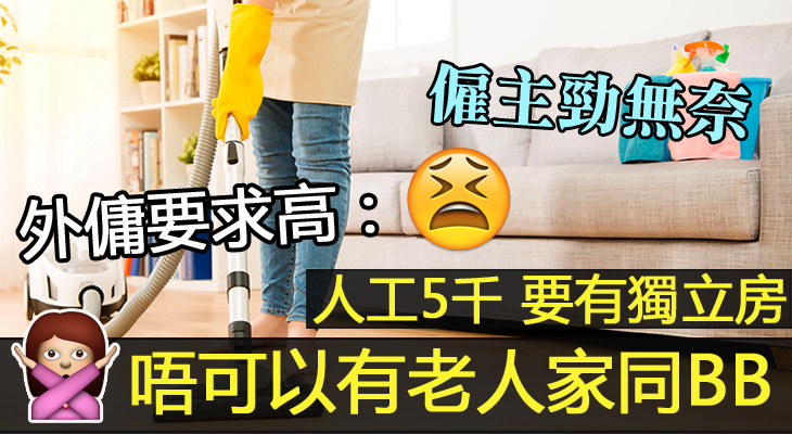 有僱主在Facebook群組「外傭僱主必看新聞訊息」發帖表示,現在聘請「現成印傭」相當困難,除了人工要5000元起外,家中不可以有老人家和BB,或只想照顧其一,另外還要有獨立房,否則寧願等也不妥協,令僱主無奈大嘆:「年尾我請到姐姐既機會係唔係好渺茫?」