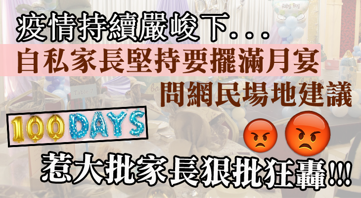 不少網民紛紛留言批評這位家長無視人群感染風險,直斥他漠視家人和BB的健康安全,嬲爆留言:「咁嘅時勢仲諗擺滿月酒」、「萬一有人中招就大鑊」、「BB健康最重要啊」。