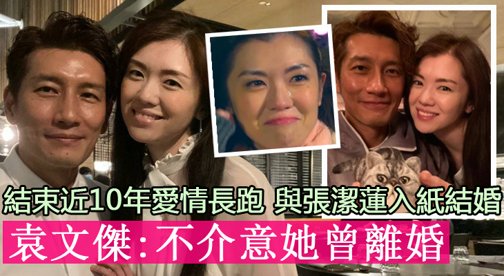 最近他們被揭秘密入紙註冊結婚,從擬結婚通知書上可見,袁文傑以本名袁盛傑申請,而曾經歷失婚的張潔蓮,婚姻狀況亦顯示為離婚。