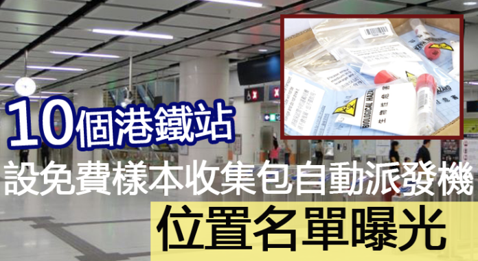 港鐵表示,由明天起將在10個港鐵站設置自動派發機,方便巿民自助領取樣本收集包。