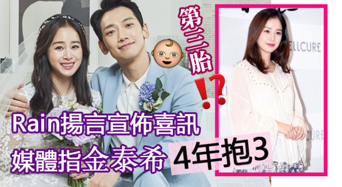 消息發佈後,韓媒指Rain有機會宣佈太太金泰希懷第三胎的好消息。如果是真的,她就會四年抱三,當然希望第三胎是B仔吧!