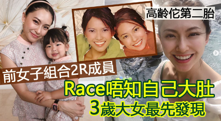 雖然是第二次懷孕,但原來Race初時並不知道自己大肚,最先發現竟然是3歲的女兒,整件事都好搞笑,Race講述經過,早上女兒跟她說:「媽咪,有個BB喺你肚入面」,這時Race才醒起月經真的遲了,然後再驗一驗,結果真的有了BB,就覺得又特別又神奇!